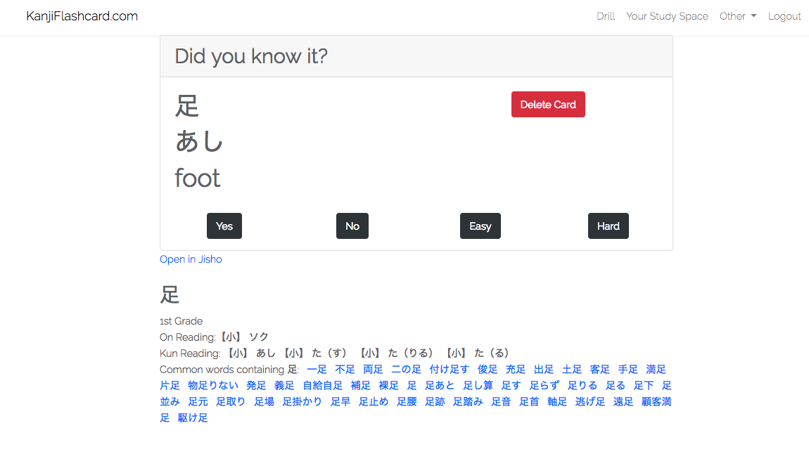 Easy - Adds five points from the Kanji and removes it from the drill box.