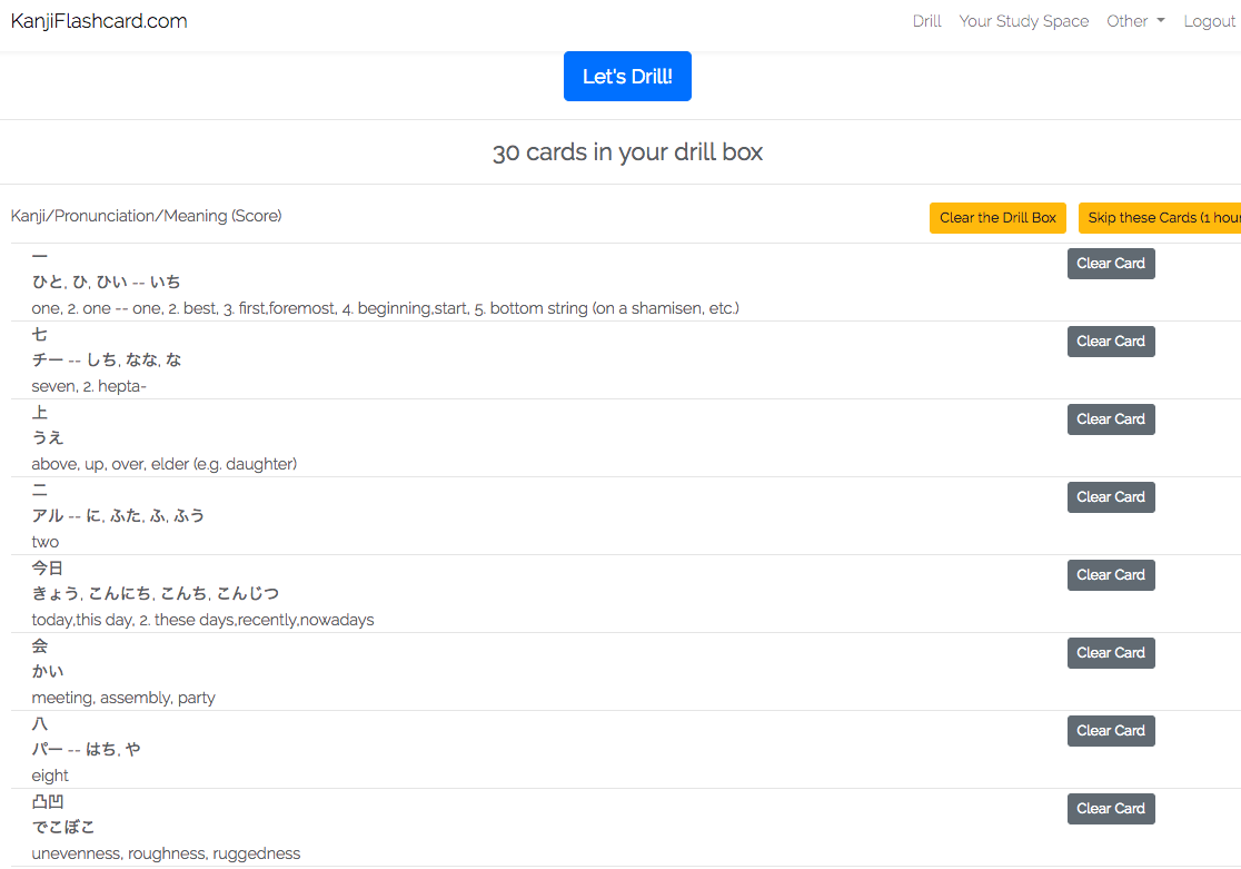 You will see the Kanji that you will drill. Click the "Let's Drill!" button.